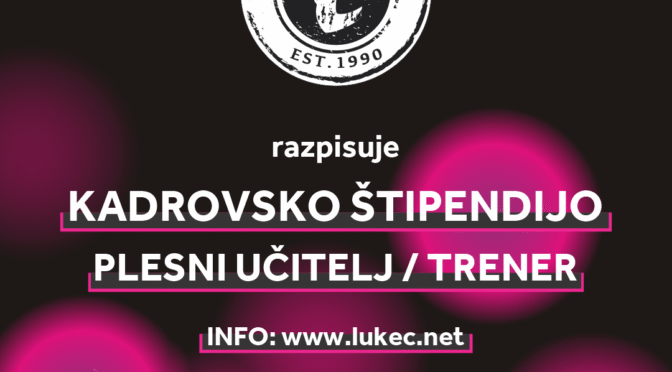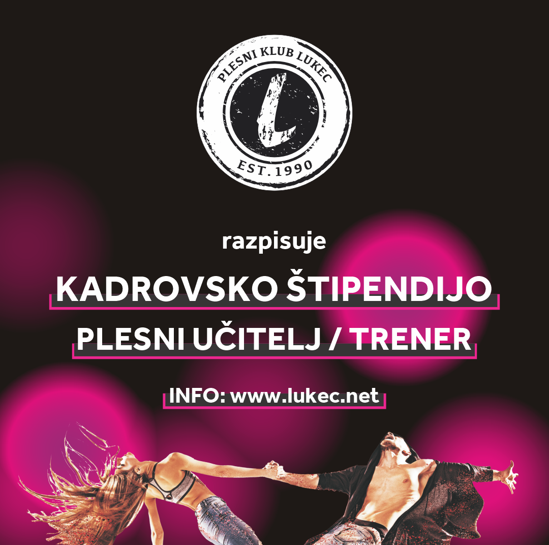 Plesni klub Lukec, Cesta krških žrtev 135c, 8270 Krško, razpisuje kadrovsko štipendijo za izobraževanje bodočega plesnega učitelja oz. trenerja.