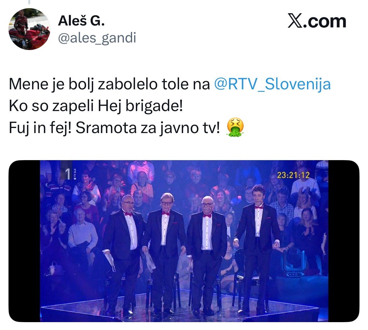 “Fuj in fej! Sramota za javno tv!,” je med drugim zapisal eden od ogorčenih gledalcev na X.