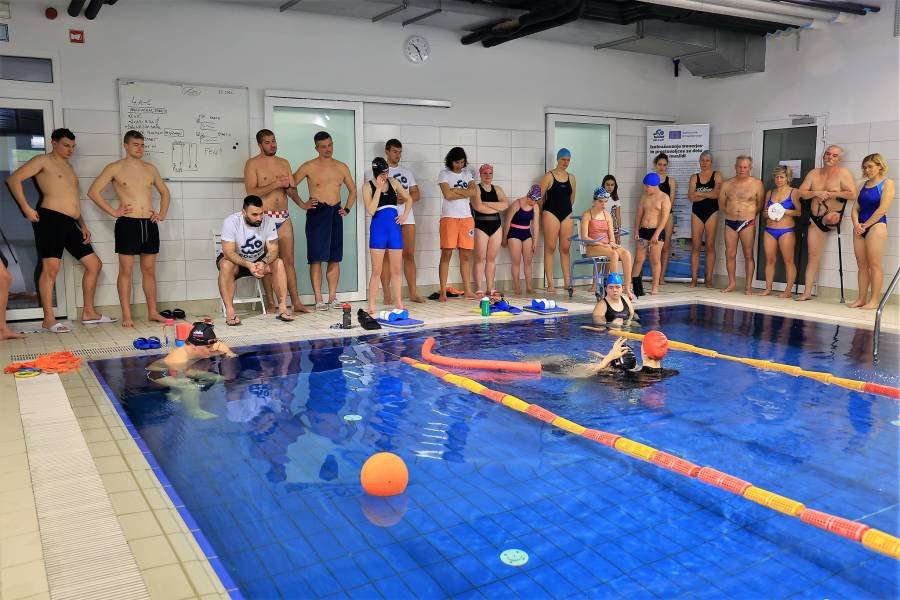 Minuli vikend je v Krškem potekalo dvodnevno teoretično in praktično usposabljanje za 8 trenerjev in 8 prostovoljcev iz Slovenije in Hrvaške pod vodstvom Mihovila Španje in Ane Matković Mustapić, avtorjev “Priročnika za trenerje in prostovoljce za delo z invalidi v vodi”. Praktični del treninga, od samega dostopa športnikov do vaj in gibanja, smo izvajali na šolskem bazenu Krško s slovenskimi športniki invalidi, člani Športnega društva Plavalček.