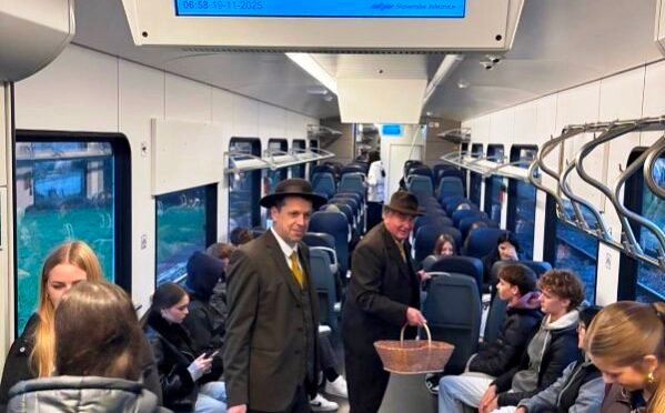 Sevniški čebelarji na vlaku presenetili potnike z delitvijo jabolk in medu