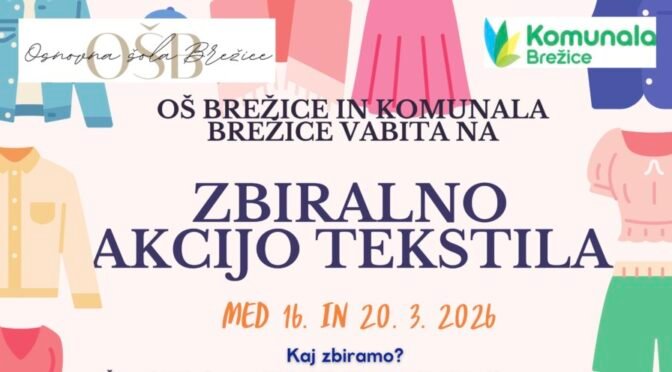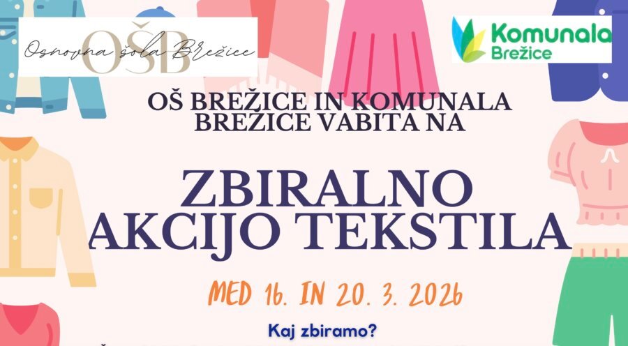 Osnovna šola Brežice in Komunala Brežice vas vabita, da prevetrite svoje omare in sodelujete v dobrodelno-ekološki akciji. Namesto da tekstil konča med mešanimi odpadki, mu podarite novo priložnost za ponovno uporabo ali recikliranje.