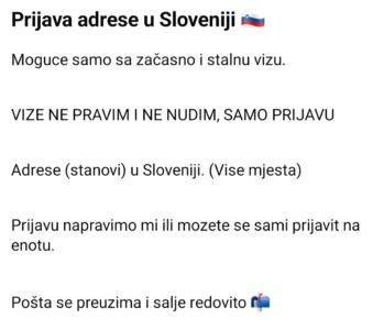 Še ena objava (v srbohrvaščini) pravi: “Prijava na naslov v Sloveniji. Prijavo naredimo mi ali se lahko sami prijavite na enoto.”