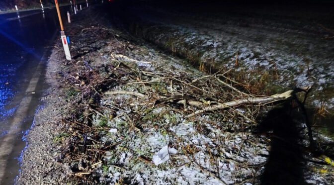 Izvozili so z dvema gasilcema tehničnima reševalcema in enim gasilskim vozilom. Po prihodu na kraj dogodka so opravili hitri ogled in zavarovali mesto nesreče. Ugotovili so, da je prišlo do padca drevesa na regionalno cesto. Z motornimi žagami so razžagali drevo ga umaknili iz cestišča. Ob vračanju iz intervencije so se napotili na naslednjo dojavo za pomoč na isti regionalni cesti.