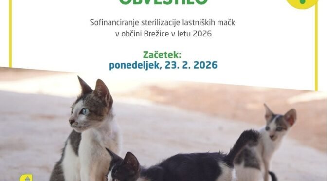 Občina Brežice tudi v letu 2026 nadaljuje z izvajanjem preventivnega ukrepa za zmanjšanje števila zapuščenih živali. Občina bo sofinancirala ceno sterilizacije lastniških mačk in sicer v obeh veterinarskih ambulantah: Vet BM v mestnem jedru in Veterinarski bolnici Brežice d.o.o..