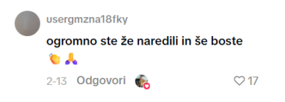 Pod isto objavo so izpostavili tudi primer komentarja drugega uporabniškega računa z imenom “usergmzna18fky”: “ogromno ste že naredili in še boste”, kar seveda predstavlja sporočilo podpore Golobu. Tudi analiza tega računa je pokazala, da gre za bot (brez prave profilne slike in biografije, naključno uporabniško ime, brez všečkov…).