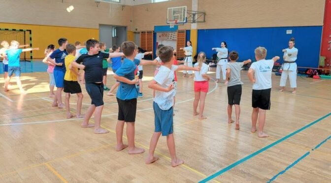 V zadnjem tednu junija je v Športni dvorani Brežice potekal prvi letošnji termin Tabora aktivnih doživetij 2023 v organizaciji Zavoda za šport Brežice, ki je bil namenjen otrokom na počitnicah. Že četrto leto zapored se je na taboru predstavil tudi Karate klub Brežice, ki so ga zastopale trenerki Nastja in Metka Galič ter reprezentantki v katah Maja Lazanski in Maja Lakner.