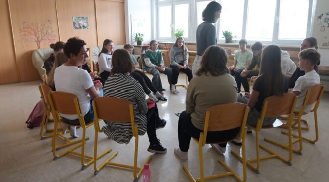 Vsak dan med 13. in 14. uro imamo zanimive delavnice z gosti. V ponedeljek dopoldne smo izvedli Unescov projekt Učenec poučuje. Naši devetošolci so za dve uri stopili v čevlje učiteljev in se preizkusili v novi vlogi. Odlično jim je šlo. Po kosilu smo ustvarjali z Marjano Gerjevič, se urili v socialnih veščinah z MC Brežice, v torek brali z Andrejo Dvornik iz brežiške knjižnice in igrali badminton s Tadejem Škofom, v sredo nas je obiskala frizerka Jana Strnad, hkrati pa so se učenci pomerili v odbojki z učitelji.