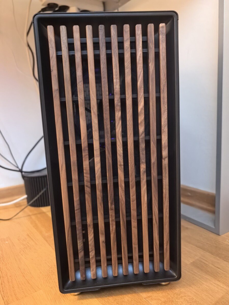 Fractal ima kar nekaj odličnih ohišij. V njih sem že sestavljal in tudi doma imam še vedno njihovo klasiko Meshify-C. Fractal North XL, ki ga Tuxedo uporablja za svoje največje »tower« računalnike, ima eno zanimivo posebnost – leseno sprednjo stranico (hrast ali oreh). Lepo popestri drugače klasičen izgled in kar mi je še dodatno všeč pri tem je, da bo les pri vsakem uporabniku izgledal nekoliko drugače.