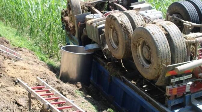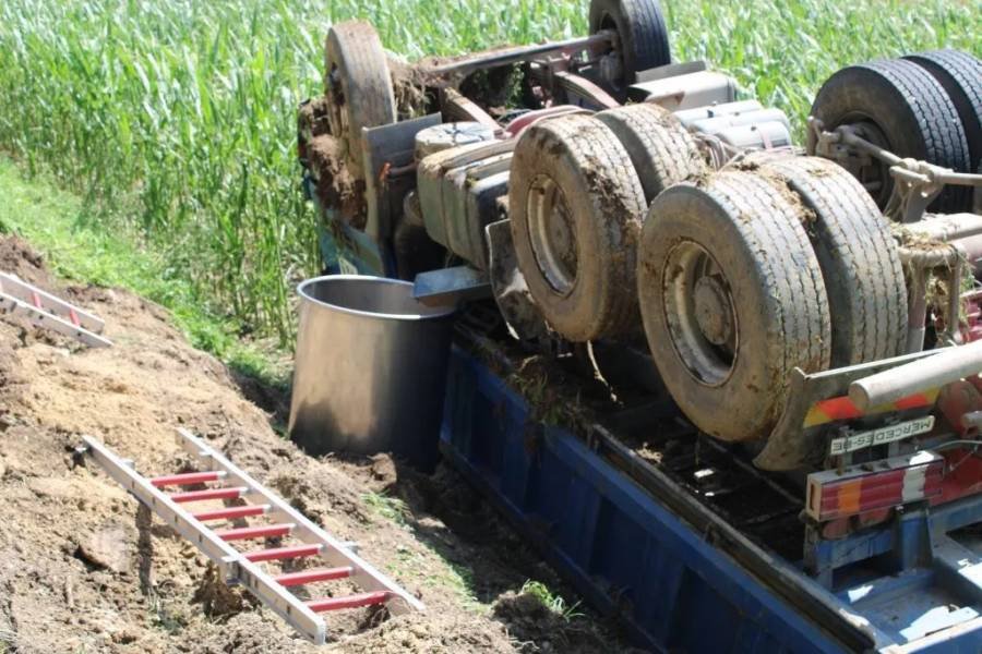 Danes popldne je nekaj po 14.00 v naselju Dramlja (občina Brežice) tovorno vozilo zapeljalo s cestišča in se prevrnilo na streho na obdelovalno površino. Gasilci PGE Krško so zavarovali kraj dogodka, odklopili akumulator, preprečili iztekanje pogonskega goriva, preostalo gorivo prečrpali v namenske posode ter posuli razlite motorne tekočine in sanirali zemljino. V nesreči je bil poškodovan voznik tovornjaka.