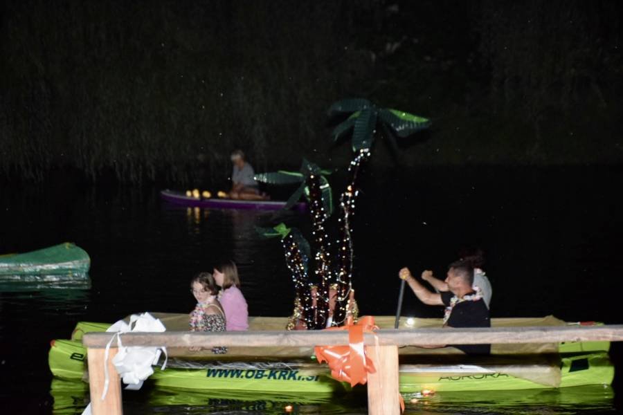 Kmalu za tem, ko se je stemnilo pa je sledil pozdrav domačega pihalnega orkestra in spust okrašenih splavov in čolnov, ter prižig kar tisočih lučk na Krki. Na tekmovanju je sodelovalo pet okrašenih čolnov. Prvo mesto je letos osvojila domača družina, družina Bratkovič, ki je čoln okrasila v tematiki Havajev. Drugo mesto je zasedel čoln Kopel na Krki Maj in Timotej Jordan. In tretje mesto čoln z naslovom Božič, na njem so bili Neli, Filip in Ana pod budnim očesom Klemna Sevška.