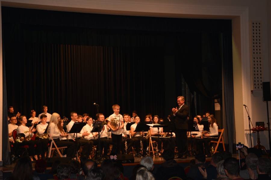 Večer se je pričel z glasbo godalnega orkestra, ki ga vodi profesorica violine Andreja Zupanc. Sledil je nastop pihalnega orkestra naše glasbene šole pod vodstvom profesorja trobil in dirigenta Francija Lipovška. Orkestra sta nas popeljala skozi različne glasbene svetove – od klasičnih melodij do uspešnic popularne glasbe. Posebno noto večera sta dodala solista. Z orkestrom je kot solist zaigral učenec roga Žak Cesar. S svojim glasom pa se je orkestru pridružila učenka petja Andreja Turk. Skupaj so ustvarili čarobno glasbeno doživetje s skladbami, ki so segle do srca občinstva. Celoten večer je z izbranimi besedami zaokrožila profesorica petja mag. Martina Prevejšek.