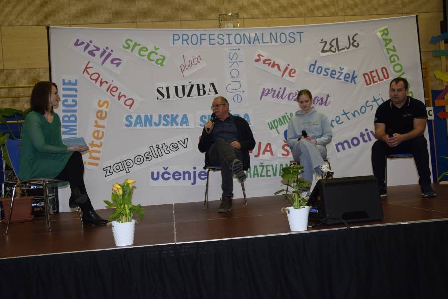 V pogovoru z Vesno Perko sta svojo poklicni poti predstavila podjetnika Janez Pungerčar z Malkovca in Marko Borštnar iz Tržišča, o izbiri izobraževalne poti je spregovorila nekdanja učenka OŠ Tržišče Žana Bartolj.