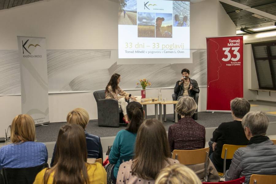 V četrtkovem popoldnevu, 27. marca 2025, smo v Dvorani Savice Zorko v Knjižnici Brežice splošno javnost nagovorili z brezplačnim dogodkom 33 dni – 33 poglavij. Naš gost je bil Tomaž Mihelič, novinar in pevec, avtor knjige 33: To ni še ena knjiga o Caminu, ki je v drugem polletju minulega leta izšla pri Založbi 5KA. O njeni ustanoviteljici Petri Škarja, Tomaž niza le pozitivne besede. Hvaležen (ji) je, da ga je sprejela in objela s svojimi (angelskimi) krili.