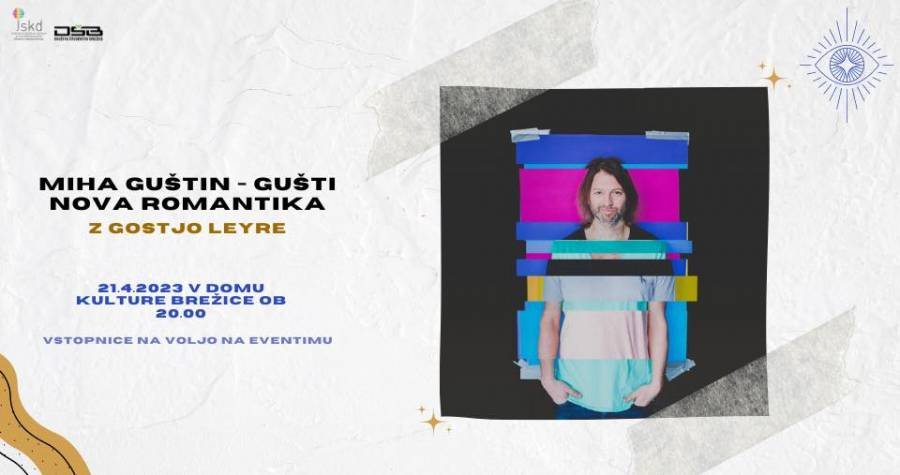 Društvo študentov Brežice vabi na petkov večerni koncert v Domu kulture Brežice, na katerem bo nastopil Miha Guštin – Gušti. Akustično/električno bo krmaril skozi lastne melodije in pesmi, ki so zaznamovale slovenski glasbeni prostor in so občinstvu že dobro poznane z naslovom Nova romantika in z gostjo Leyre.