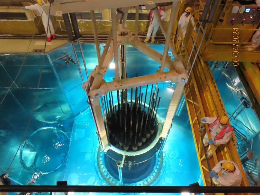 Transportni mehanizem omogoča podvodni prenos gorivnih elementov med reaktorsko zgradbo in bazenom za izrabljeno gorivo. Vse gorivne elemente, ki so bili od zadnjega remonta leta 2022 vir toplote za proizvodnjo električne energije, so naše operaterske posadke med vikendom iz reaktorja uspešno prenesle v bazen z izrabljenim gorivom. Sledi vizualna inšpekcija vseh gorivnih elementov, v zadnjem tednu pa še polnitev sredice za naslednji gorivni ciklus – zamenjava 53 gorivnih elementov s svežimi.