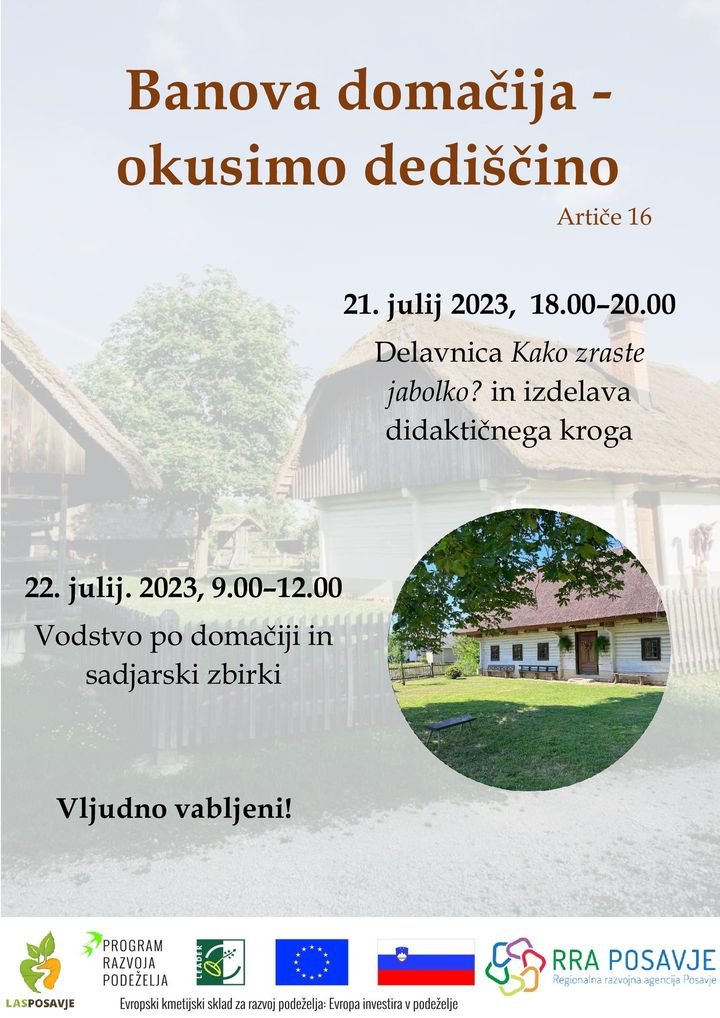 Projekt »Banova domačija – okusimo dediščino« je sofinanciran s pomočjo Evropskega kmetijskega sklada za razvoj podeželja: Evropa investira v podeželje. Za vsebino je odgovorna Občina Brežice. Organ upravljanja, določen za izvajanje Programa za razvoj podeželja RS za obdobje 2014-2020, je Ministrstvo za kmetijstvo, gozdarstvo in prehrano.