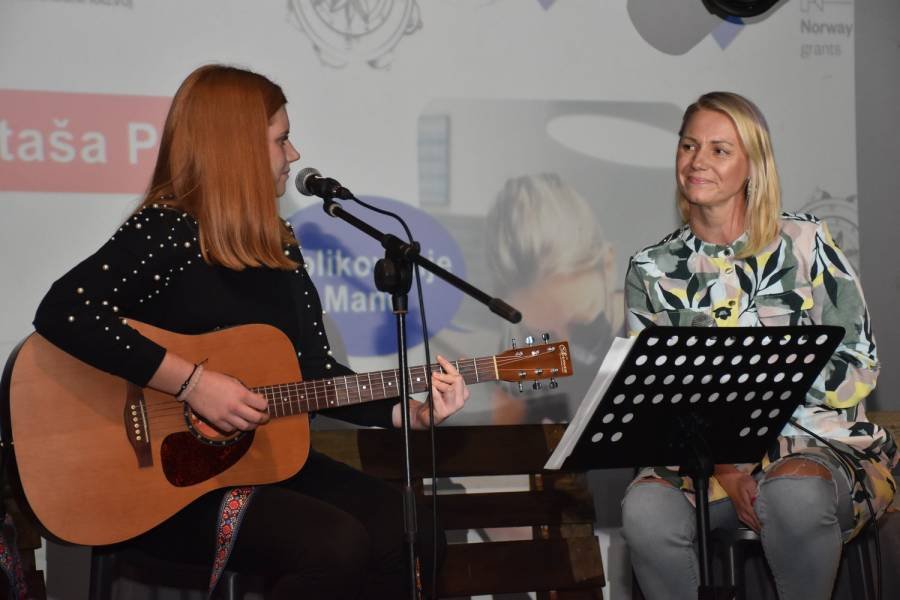 Pogovorni večer sta s svojim nastopom obogatili Manca in Hana Grubič s petjem in kitaro, zbrane pa je v okviru večera pozdravila in nagovorila tudi direktorica ZMŠ Krško Manuela Bojnec.