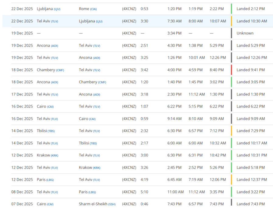 Nasprotno pa Nika Kovač, Filip Dobranič, Borut Mekina in izraelski sodelavec Achiya Schatz – opirajo svoje trditve na podatke s sledenja letalom prek Flightradar24 in na vire iz prve roke. Ti kažejo zgolj tri pristanke omenjenega letala Hawker 800XP z registrsko oznako 4X-CNZ: 24. novembra 2025, 22. decembra 2025 in 17. februarja 2026. Najbolj podrobno opisujejo prav 22. december: letalo je pristalo okoli 10.30, na krovu naj bi bilo štiri potnike iz Izraela, ki so se odpravili na Trstenjakovo ulico 8. Tam naj bi se vsaj dva Izraelca srečala z Janezom Janšo, letalo pa je okoli 13.20 odletelo proti Rimu – tokrat le s tremi potniki na krovu.