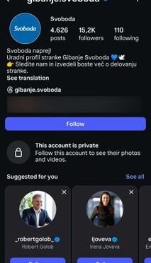 Radio Brežice Eu delimo članek z naslovom Zaklenjena profila: 'Ne bomo dopustili, da kdorkoli vpliva na potek volitev' z dne, 2026-02-25 15:07:12, avtorja 24ur.com. Celoten članek lahko preberete na izvornem naslovu: https://www.24ur.com/novice/slovenija/znova-napadli-instagram-profil-gibanja-svoboda.html