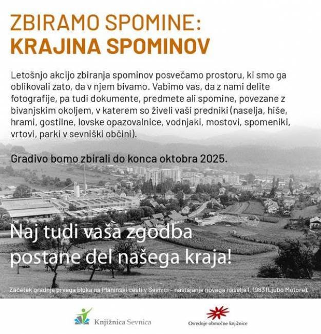 Knjižnica Sevnica se tudi letos pridružuje vseslovenski akciji zbiranja spominov. Tokratna je posvečena prostoru, ki smo ga oblikovali zato, da v njem bivamo.