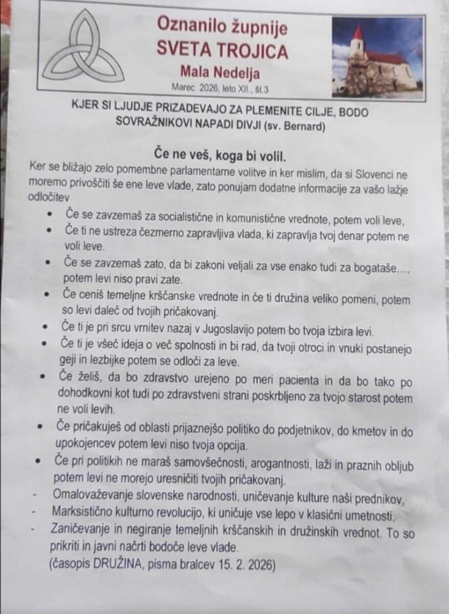 Gre za župnika v Mali Nedelji, g. Srečka Frasa. Duhovnik se je v času volilne kampanje odločil javno izraziti svoje mnenje.